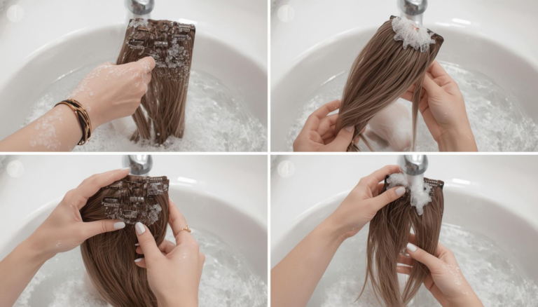 By washing every 10–15 wears and following gentle care steps, your clip-ins will stay: